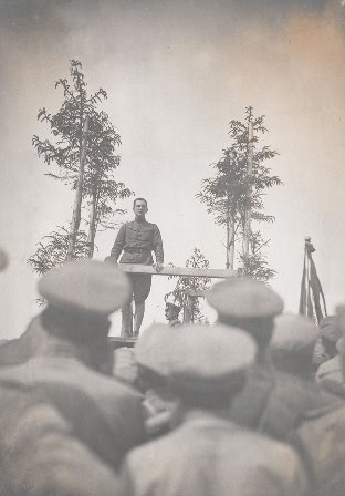 Да такіх тагачасных газетных выразаў пра яго асобу, як «рыцар рэвалюцыі», «народны трыбун», «першае каханне рэвалюцыі», «выратавальнік Айчыны», салдаты надаюць яму трапную мянушку «галоўнаўгаворваючы». Керанскі аб’язджае франтавыя часці, выступае на мітынгах, імкнучыся натхніць салдат на наступленне і падняць баявы дух войска. Яго аскетычную постаць з кароткай стрыжкай у паўваенным карычневым фрэнчы, пакамечанай фуражцы і неахайна павязаных абмотках, каб выглядаць падобна «народнаму правадыру» і падабацца салдацкім масам, можна было ў ліпені 1917 года заўважыць каля Палачанаў і Гарадка, пад Крэвам і Сівіцай, на станцыі Залессе і паблізу вёскі Белая.
