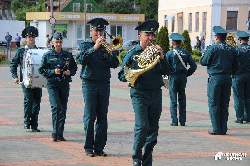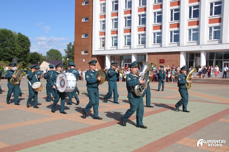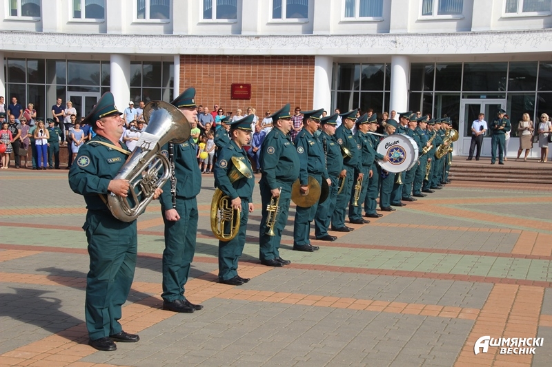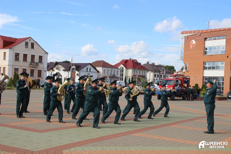 Плац-концерт прошел на площади у здания райисполкома и был посвящен 165-летию образования пожарной службы Беларуси.