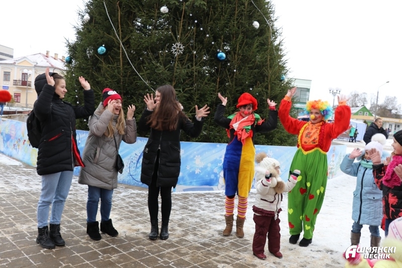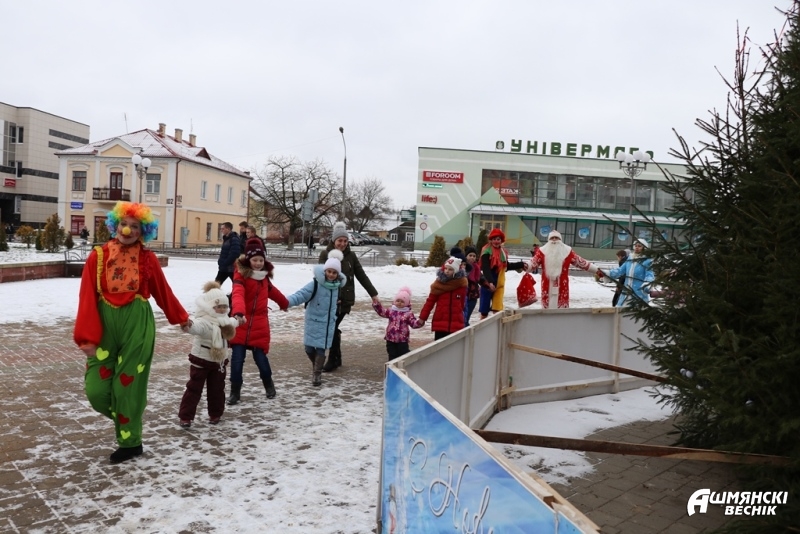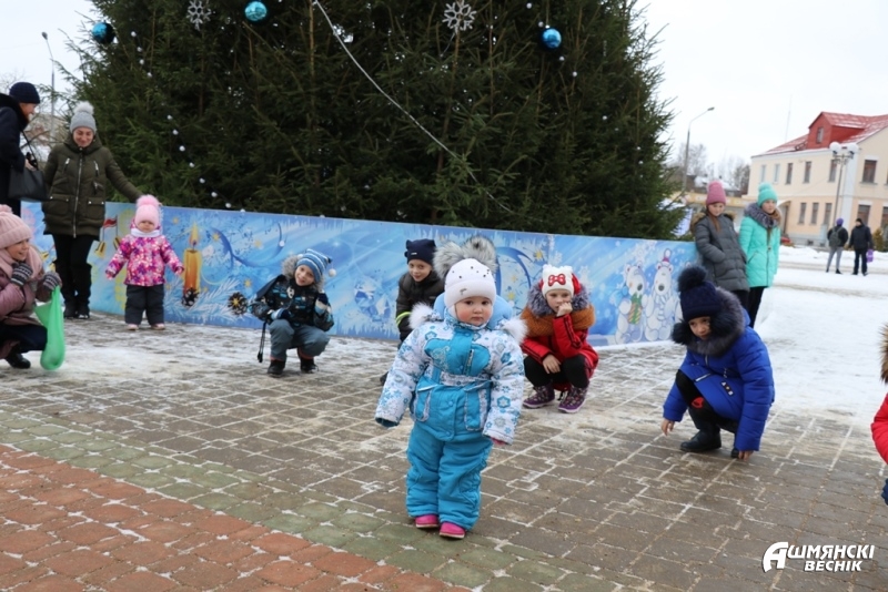 Праздничные забавы у главной елки города собрали сегодня юных жителей Ошмян и их родителей.