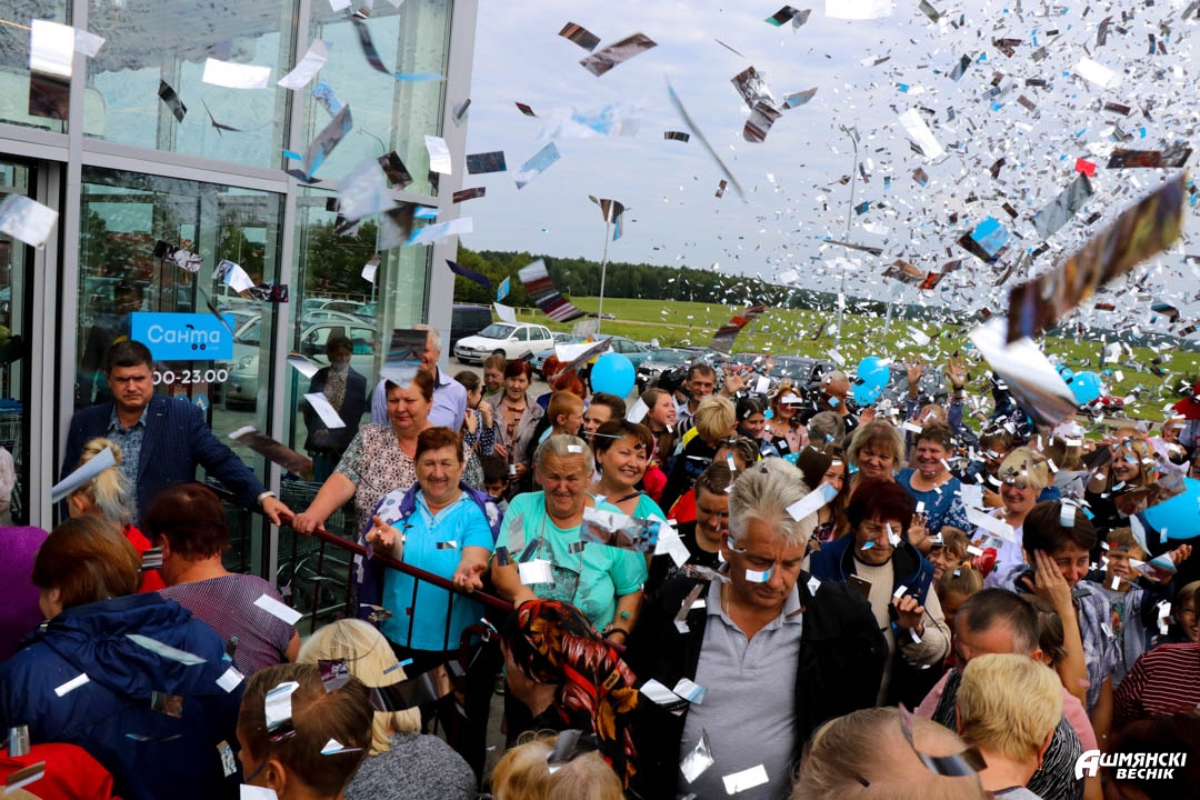 Это второй по счету торговый объект сети ООО «Санта Ритейл» в городе, он открыт в новом жилом микрорайоне по улице Борунской. В торжественной церемонии открытия приняли участие председатель Ошмянского райисполкома Мирослав Саросек, его заместитель Галина Лютковская, заместитель директора по развитию ООО «Санта Ритейл» Владимир Кравцов. Под звуки торжественных аккордов и громкие аплодисменты собравшихся горожан традиционную красную ленточку перерезали руководитель района и представитель торговой компании.