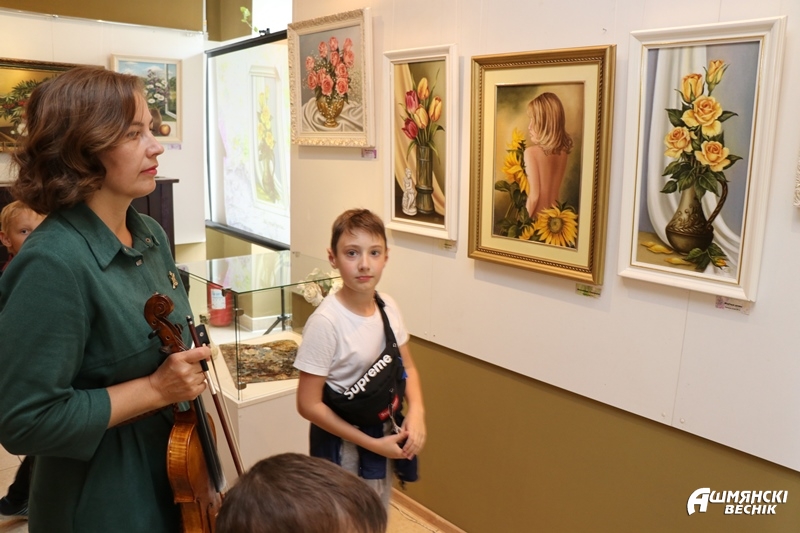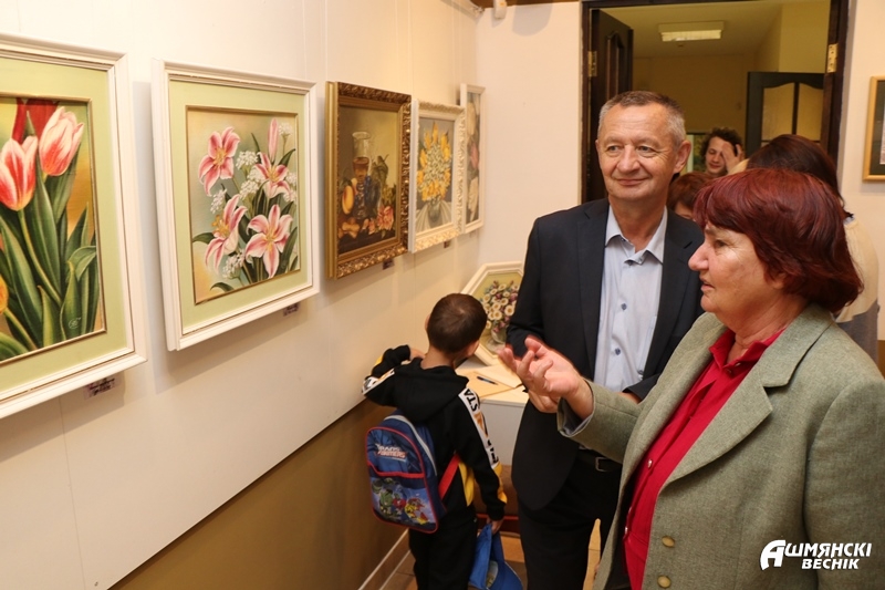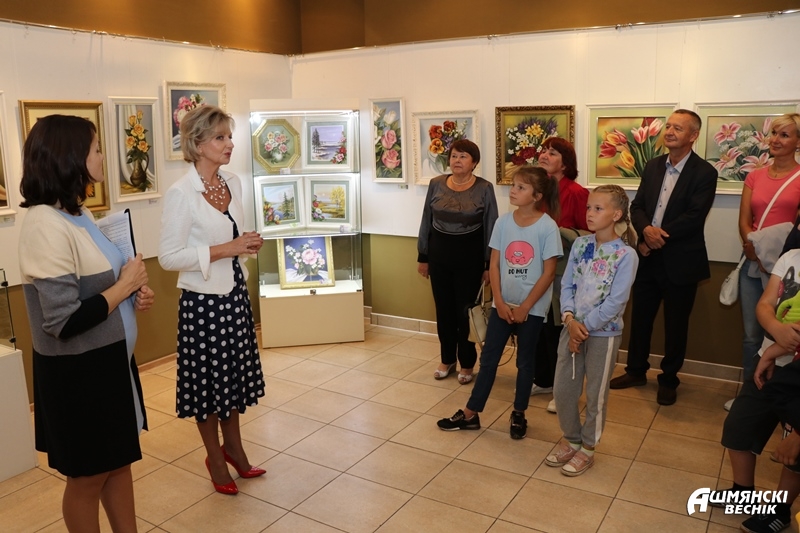 На открытии «Цветочного рая» в Ошмянах было людно: пришли воспитанники летнего лагеря гимназии №1 с педагогами, значимые личности города, неравнодушные к искусству: Владимир Бизюк, Тамара Филиппович, Светлана Лемешева. Валентина Александрович, заместитель начальника отдела идеологической работы, культуры и по делам молодежи Ошмянского райисполкома, выразила благодарность художнице за творчество и возможность наблюдать его в нашем городе, сделала художнице подарок на память.