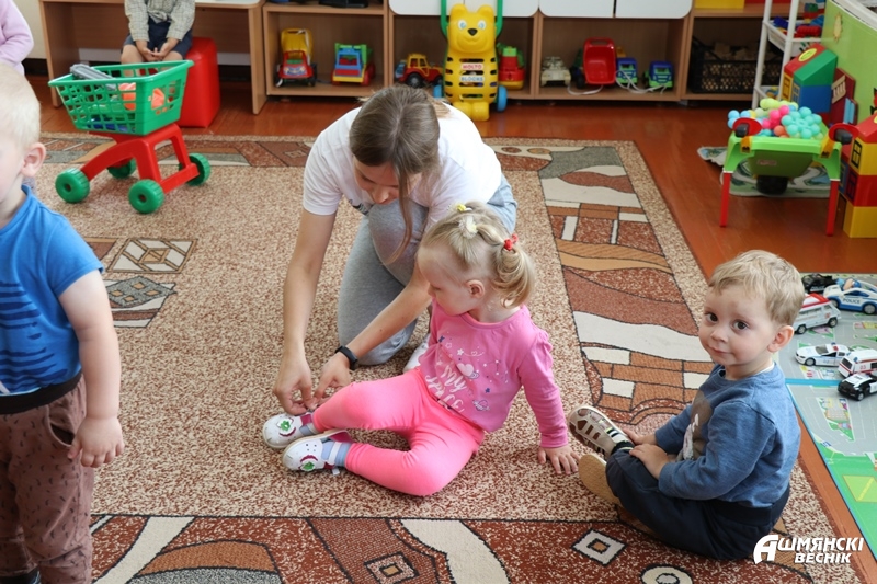 Памочнік выхавацеля, студэнтка Віцебскага медуніверсітэта Вікторыя Свірская, разам з вопытным выхавацелем Наталляй Анатольеўнай Юхевіч зай-маюцца з самымі маленькімі выхаванцамі дзіцячага садка. Напэўна, гэта самая цікавая і складаная праца, таму што дзеці пераступілі парог установы толькі ў чэрвені і праходзяць перыяд адаптацыі.