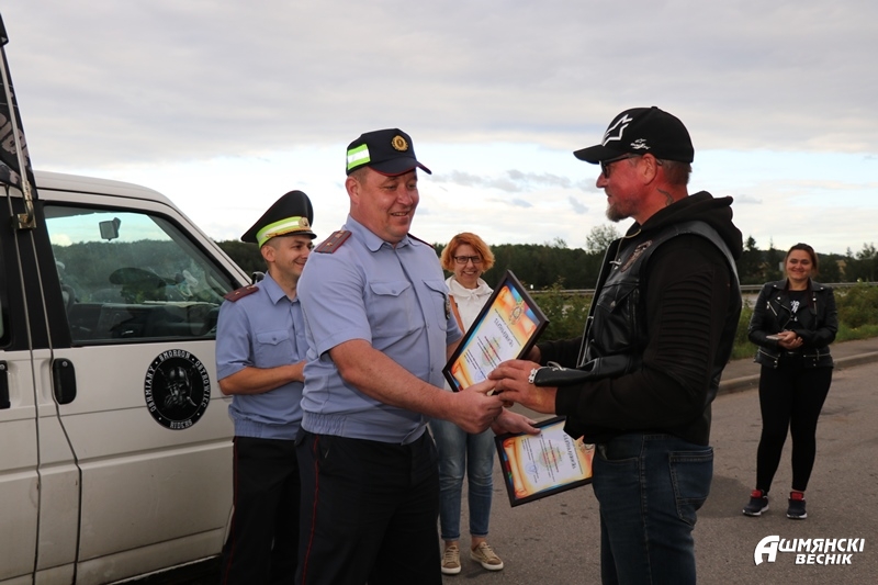 В проведении встречи приняли участие представители отделений ГАИ трех отделов внутренних дел, которые вручили байкерам благодарности за активное содействие органам внутренних дел. Старший госавтоинспектор отделения ГАИ Ошмянского РОВД Александр Каморник вручил награды Андрею Кетрису и Андрею Королёву. Начальник Островецкой ГАИ поблагодарил за помощь Ренату Ефимову.