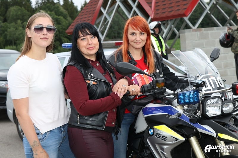 Добирались на нее байкеры централизованно. Колонна ошмянских мотолюбителей, сопровождаемая сотрудниками Госавтоинспекции, перед тем, как отправиться по заданному маршруту, сделала почетный вояж по центральной улице Ошмян.