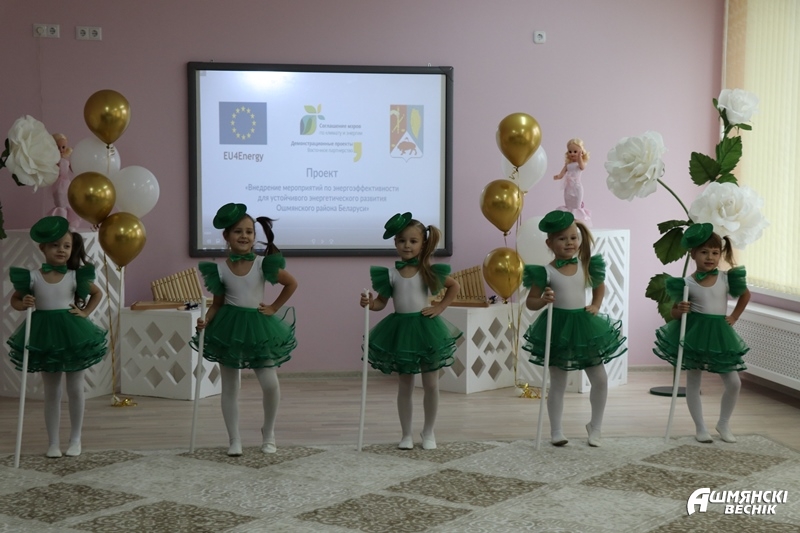 Здание детского сада, построенное полвека назад, давно нуждалось в «новом дыхании». Капитальный ремонт учреждения, замена мебели и оборудования стали возможны благодаря финансовой поддержке областного исполнительного комитета. В 2018 году благодаря победе в конкурсе грантовых проектов, проводимом Европейским Союзом, на базе учреждения дошкольного образования началась реализация проекта «Внедрение мероприятий по энергоэффективности для устойчивого энергетического развития Ошмянского района Беларуси». Общий бюджет проекта, финансируемого Европейским союзом и Ошмянским райисполкомом в рамках программы «Соглашение Мэров – демонстрационные проекты», составил свыше 696 тысяч евро, из которых 20,33 процента – софинансирование Ошмянского райисполкома.