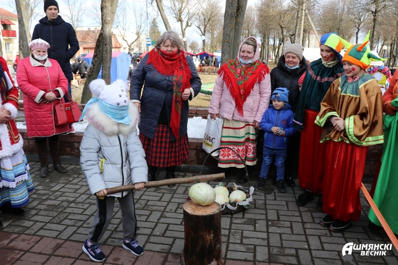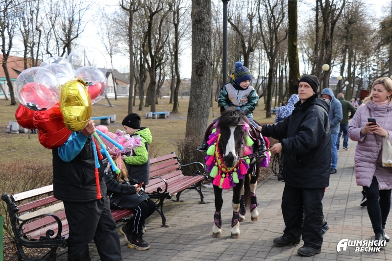 В масленичное воскресенье в Ошмянах работали торговые точки с едой, а также игрушками и сувенирами. Можно было попробовать свои силы в тематических шуточных соревнованиях и прокатиться на пони. Музыкальное сопровождение дарили гостям праздника работники культуры, а также прикрашенные гости.