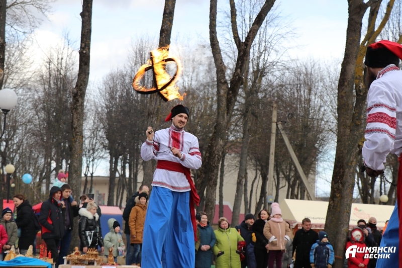 Трудно представить более веселый и озорной праздник, чем Масленица. Продегустировать блины, поучаствовать в конкурсах, посмотреть выступления артистов и насладиться огненными шоу — вот ради чего сегодня собрались ошмянцы на главной улице города.