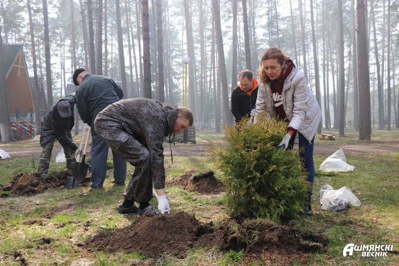 С самого утра началась работа на запланированных объектах, в том числе и на территории детского оздоровительного лагеря «Дружба». Работники райисполкома во главе с председателем Владиславом Гершгориным высадили более пяти десятков туй и можжевельников в лагере в Замостянах, своим личным примером призвав жителей района принять участие в субботнике.