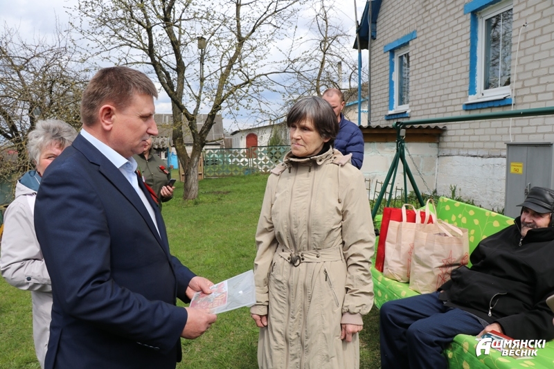 В преддверии светлого праздника — Дня Победы — в Ошмянском районе прошла патриотическая акция «Спасибо за Победу!». Ветераны войны и малолетние узники фашистских лагерей принимали поздравления от представителей местной власти во главе с председателем райисполкома Владиславом Гершгориным, председателем районного Совета депутатов Николаем Квяткевичем, заместителем председателя райисполкома Натальей Станкевич.
