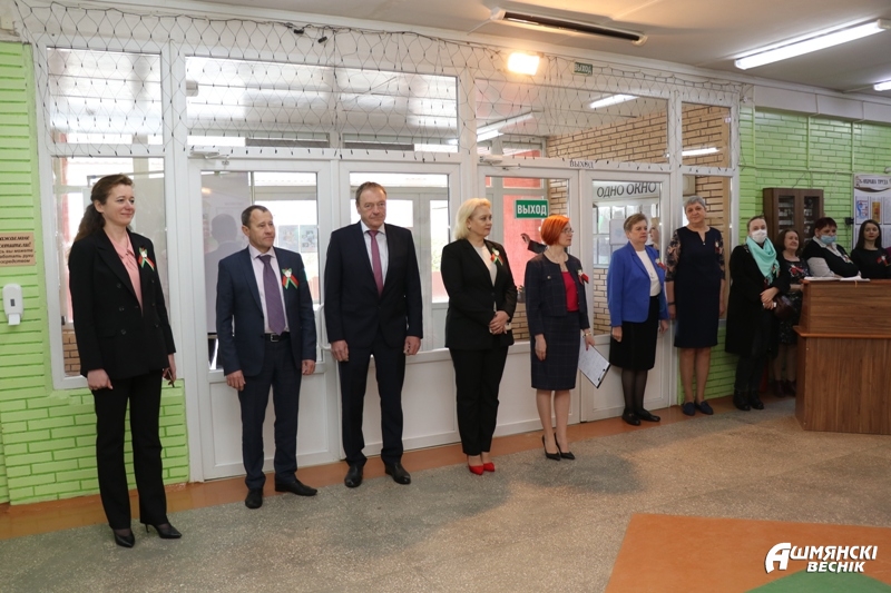 Несмотря на холодную майскую погоду, внешний облик учреждения образования дарит ощущение праздника, как и образцовый ансамбль песни и танца «Званочкі», встречающий гостей церемонии открытия обновленной школы. Поздравить коллектив СШ и воспитанников с этим важным событием пришли заместитель председателя райисполкома Наталья Станкевич, начальник управления образования Светлана Барковская, директор ООО «Гранит+» Александр Гугало и директор управления капитального строительства Ошмянского района Станислав Хилинский.