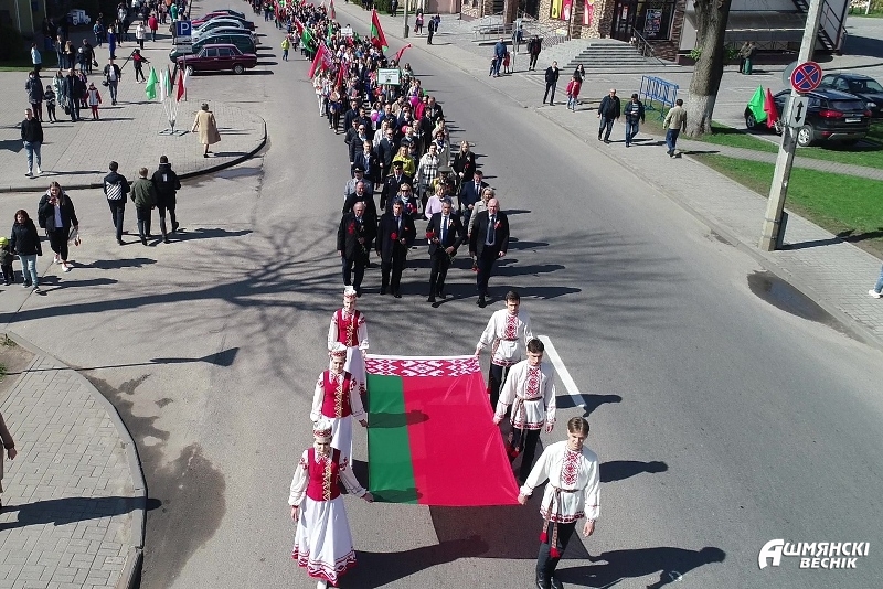 После яркого театрализованного пролога, который напомнил о трагических событиях военных лет, под гимн Республики Беларусь был поднят Государственный флаг, что послужило началом торжественного митинга. Почетное право поднять Государственный флаг было предоставлено председателю Ошмянского районного исполнительного комитета Владиславу Гершгорину, председателю районного Совета депутатов Николаю Квяткевичу, передовикам народного хозяйства, занесенным на районную Доску почета по итогам 2020 года — начальнику Ошмянского отдела Департамента охраны Ивану Вержинскому, заведующей фермой «Гольшаны» Татьяне Гордей, мастеру участка по производству сыра на автоматизированной линии Ошмянского сыродельного завода Ольге Завадской, тренеру-преподавателю по гандболу Ошмянской ДЮСШ имени А.С.Барбашинского Вере Мальцевой, начальнику РОВД Александру Ребо, начальнику отделения пограничного контроля «Каменный Лог» Максиму Хоменку.