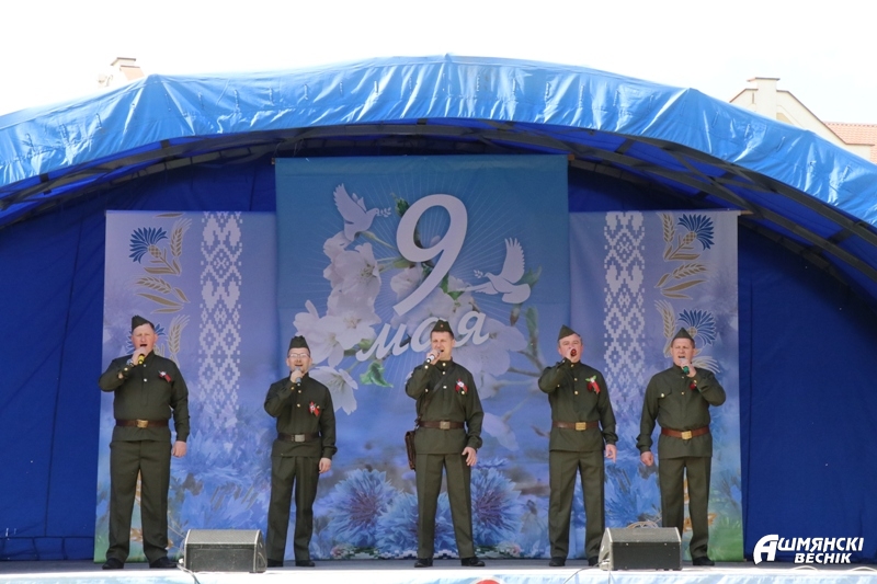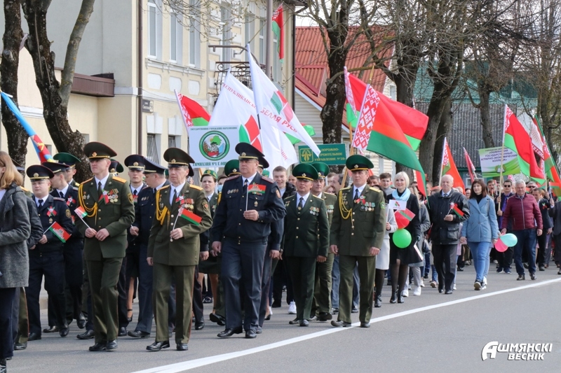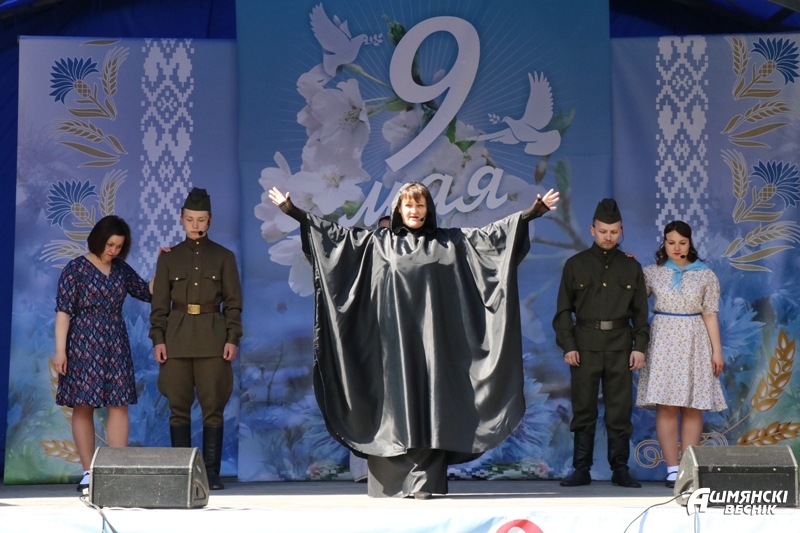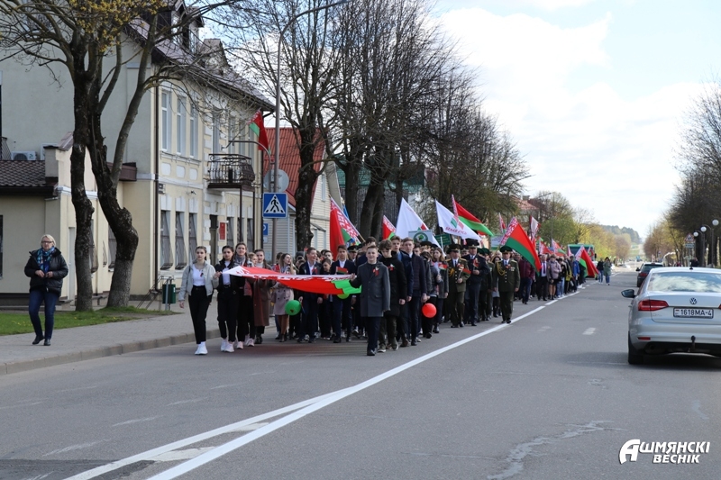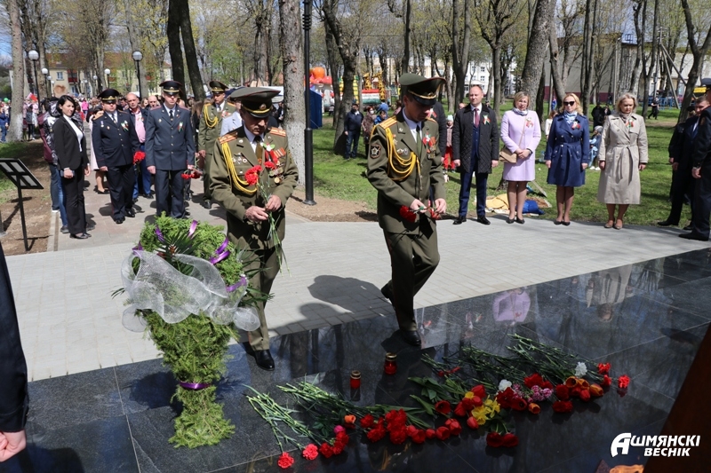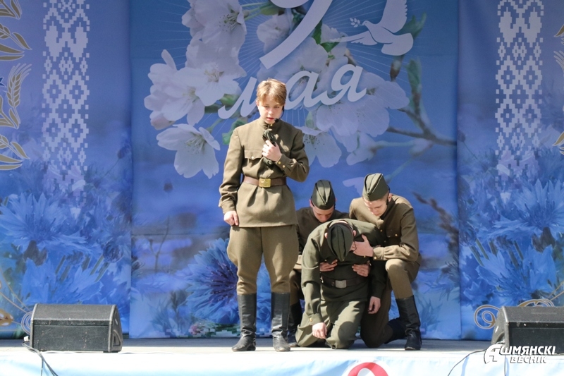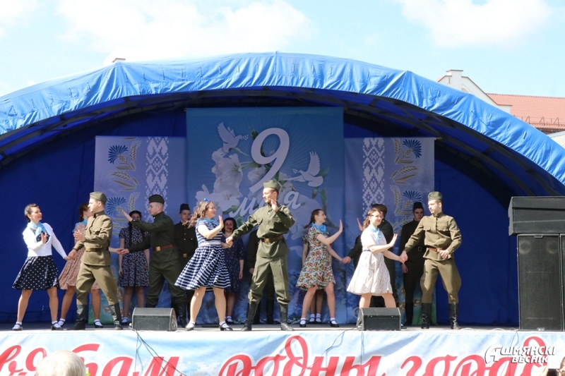Утром 9 Мая две праздничные колонны — члены трудовых коллективов и учащиеся учреждений образования — прошли по главной улице города, встретившись у городского парка, где состоялся районный праздник «Нам 41-й не забыть, нам 45-й вечно славить».