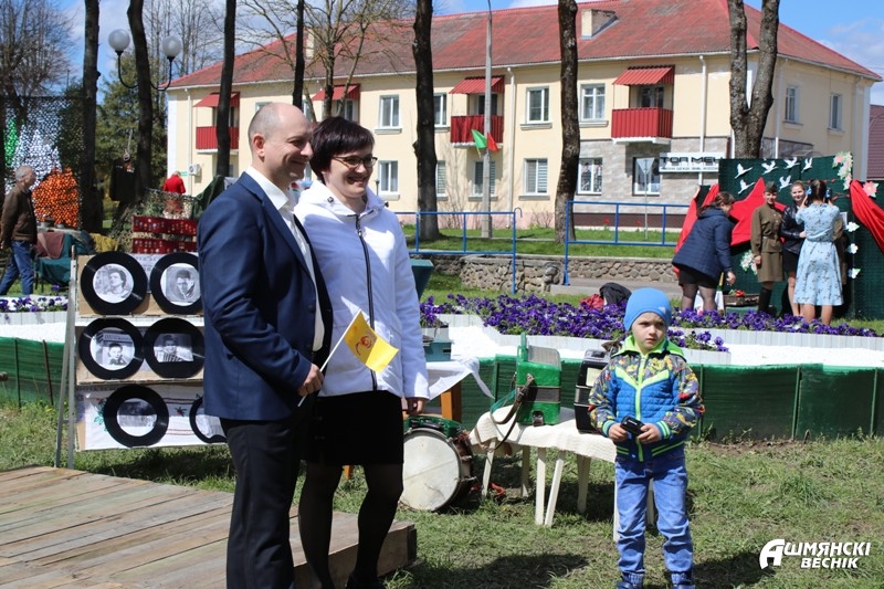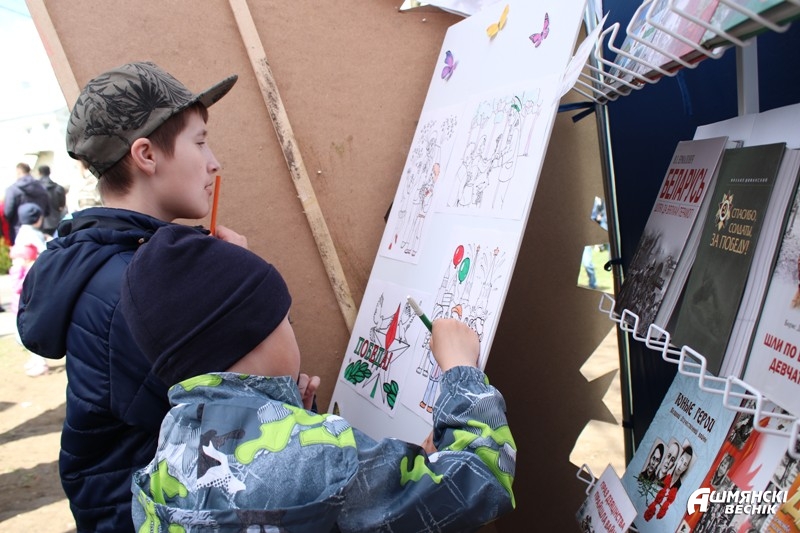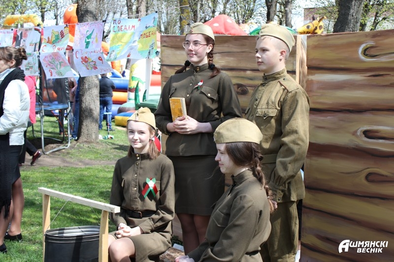Многолюдно было на интерактивной площадке «И снова Май. Салют. Победа», подготовленной коллективами районной и детской библиотек. Фотовыставка «Фотопленка с историей» и экскурсия с помощью QR-кода ждала всех, кто интересуется историей. В современной и доступной форме работники краеведческого музея имени Ф.Богушевича рассказали об истории парада на Красной площади и этих же событиях в нашем райцентре, о женщинах-партизанках, проживавших на Ошмянщине. Внимание подрастающего поколения привлекала площадка живых картин и фотозон «Партизанский лагерь», «Я приглашу на танец память», Привал», «Победители», сюжеты которых подготовили работники учреждений культуры района.