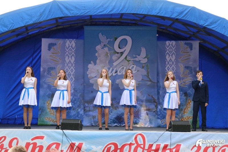 Мир, Единство, Дружба — то, что объединяет жителей республики. По всей стране дети и молодежь поздравляют ветеранов Великой Отечественной войны. Праздник Великой Победы – всеобщий праздник, день памяти и уважения людям, которые внесли свой вклад в одну из самых драматичных и гордых страниц нашей истории. Молодое поколение обязано всегда помнить, какими усилиями наша республика была поднята из пепла после войны, как развивалось и укреплялось суверенное независимое государство. Эта тема стала главенствующей в концерте-поздравлении «Под мирным небом Беларуси». Гостям и участникам праздника концертную программу подарили творческие коллективы школ города и района. Мастерски, творчески, профессионально и содержательно звучали стихи и песни, композиции и танцевальные зарисовки в исполнении юных артистов.