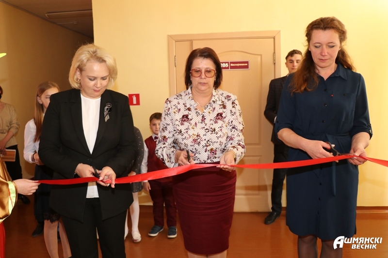 Раздзяліць з вучнямі і педагогамі ўстановы адукацыі прыемную падзею прыехалі намеснік старшыні райвыканкама Наталля Станкевіч і начальнік упраўлення адукацыі Святлана Баркоўская, якія разам з дырэктарам Людмілай Сульжыцкай перарэзалі традыцыйную чырвоную стужку.