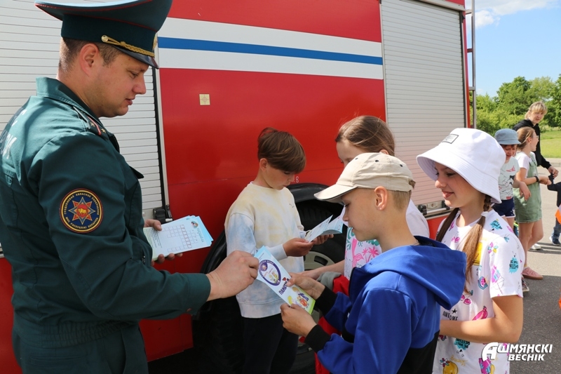 Сотрудники Ошмянского РОЧС также напомнили детям о правилах безопасности, а каждый желающий смог задать спасателям интересующие вопросы и вместе с ними ознакомиться с полезной информацией в буклетах на тему безопасности.