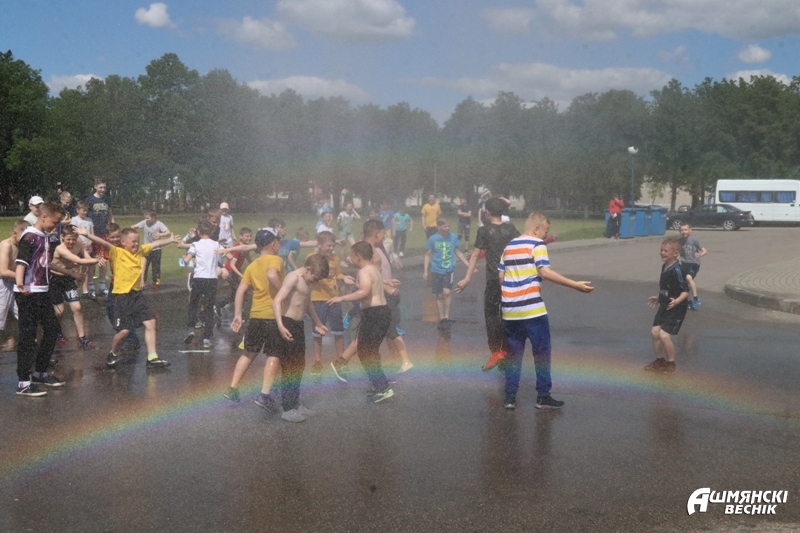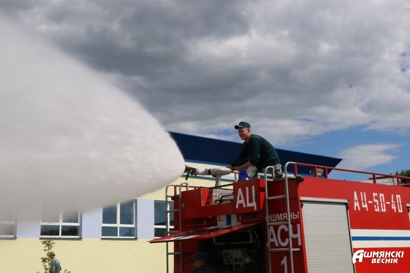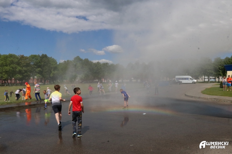 Первыми на специальном автомобиле к ребятам приехали сотрудники Ошмянского РОЧС. Инспектор сектора пропаганды и взаимодействия с общественностью Вадим Галговский рассказал юным спортсменам о специфике своей работы, показал оборудование, которое спасатели используют в работе. Большой интерес у детей вызвала демонстрация технической оснащенности пожарного автомобиля и возможность «потушить пламя» из пожарного рукава. Летящие во все стороны брызги воды сопровождались восторженными криками и смехом мальчишек и девчонок.