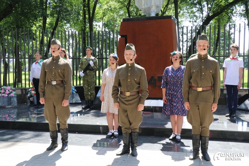 У братской могилы в городском парке собрались представители местной власти, организаций района и общественных объединений, военнослужащие, дети и молодежь, чтобы отдать дань памяти тем, кто ценой собственной жизни отстоял мир и свободу, кто на своих плечах нес все тяготы войны.