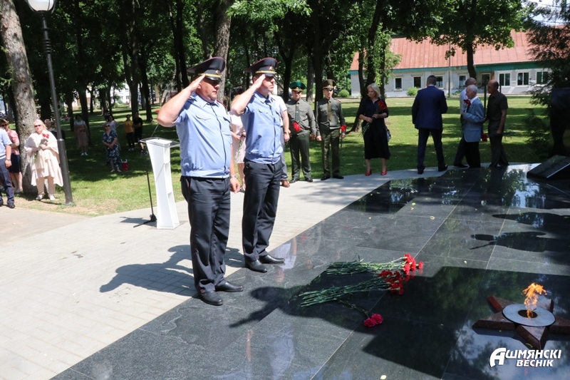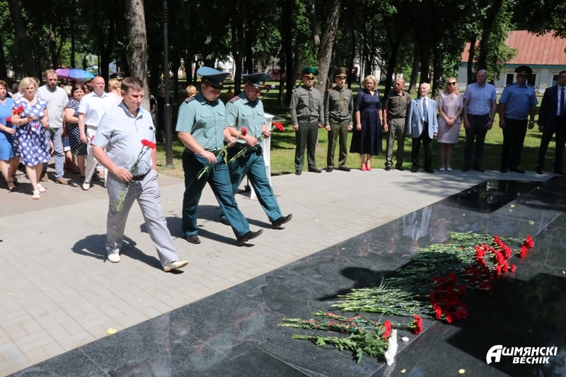 — Восемьдесят лет прошло с того трагического дня, когда жизнь разделилась на «до» и «после». Первой удар фашистов приняла белорусская земля, — обратился к присутствующим председатель Ошмянского райисполкома Владислав Гершгорин. — Люди военного поколения, как и мы, хотели учиться, работать, растить детей, но им выпала другая судьба. Для спасения Родины требовалась железная выдержка и небывалая самоотверженность.
