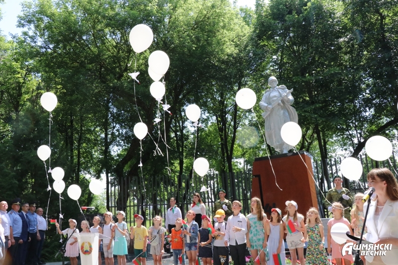 О важном долге по сохранению памяти о трагических страницах истории, жертвах и героях войны напомнили также военный комиссар Ошмянского военного комиссариата Игорь Мисюкевич и первый секретарь РК ОО БРСМ Виктория Прецкайло-Мисюта. Благодарность и цветы принимал свидетель войны Владимир Васильевич Карасев.