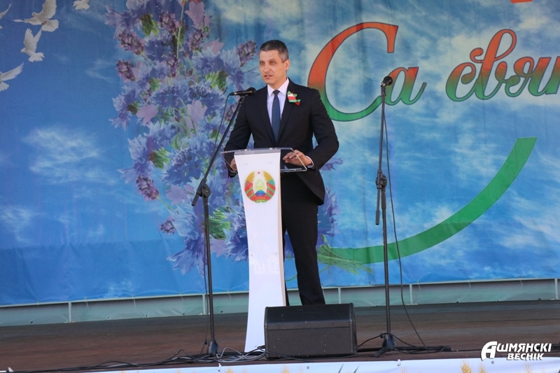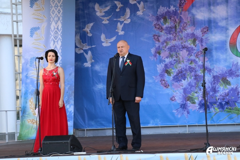 — Сёння мы адзначаем галоўнае дзяржаўнае свята нашай краіны — Дзень Незалежнасці Рэспублікі Беларусь, дзень, які прызначаны аб’яднаць нашу нацыю. Гэта дзень нашай славы, памяці аб мінулым, гонару за сучаснае і надзеі на будучае. 77 год прайшло з тых ліпеньскіх падзей, калі наша зямля была вызвалена ад нямецка-фашысцкіх захопнікаў. Мы ізноў і ізноў вяртаемся да тых гераічных і трагічных старонак Вялікай Айчыннай выайны, аналізуем яе маральныя і палітычныя ўрокі, шукаем ў гісторыі рэальныя адказы на выклікі сучаснасці. Гэта вялікае свята тых, каму дарагія і зразумелыя нашы агульныя каштоўнасці, гонар за краіну, жаданне працаваць дзеля яе росквіту, любоў да сваёй зямлі і сям’і. За кароткі гістарычны тэрмін свайго развіцця мы змаглі зрабіць нашу краіна больш багатай, цывілізаванай, паспяховай. Сёння навейшая гісторыя Беларусі вяршыцца ў тысячы працоўных калектывах, на канкрэтных рабочых месцах, таму што галоўнае наша багацце — гэта чалавек. У капілку агульных дасягненняў нашай рэспублікі робіць важкі ўклад і наша Ашмяншчына. Добрасумленна працуючы, мы дабіваемся няхай і невялікіх, але рэальных рэзультатаў. Упэўнены, што будычыня нашага раёна залежыць толькі ад нас, ад нашай працавітасці, адзінства і жадання зрабіць свой край паспяховым.