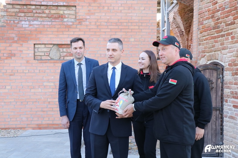Именно здесь глава района передал представителям РОО «Патриоты Беларуси» мешочек с зерном нового урожая, а также вручил гостям знаменитый гольшанский пряник.