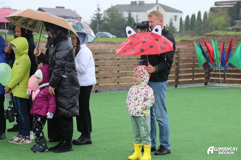 Право поднять государственный флаг на торжественной церемонии открытия было предоставлено многодетной семье Гудебских: Петру Томашевичу, Наталье Васильевне, Тимофею, Роману и Ангелине, — а также директору государственного учреждения «Ошмянский районный физкультурно-спортивный клуб» Светлане Раткевич.