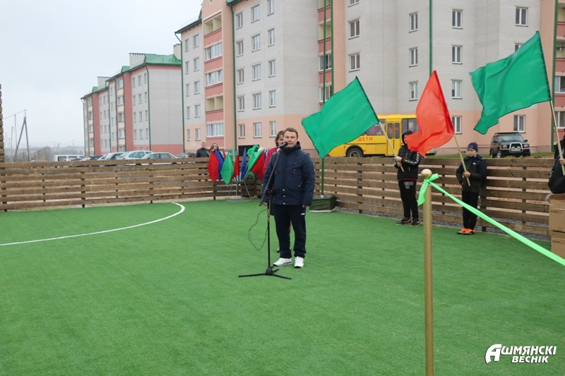 В церемонии открытия площадки приняли участие председатель Ошмянского райисполкома Владислав Гершгорин, заместитель председателя Ошмянского райисполкома Наталья Станкевич, специалист департамента по обеспечению мероприятий Белорусской федерации футбола Евгений Жук, главный инженер ОАО «Дорожно-строительный трест № 6» дорожно-строительного управления № 28 Петр Гудебский. Петр Томашевич Гудебский в строительстве площадки был заинтересован не только как специалист, но и как житель микрорайона, и как отец троих детей.