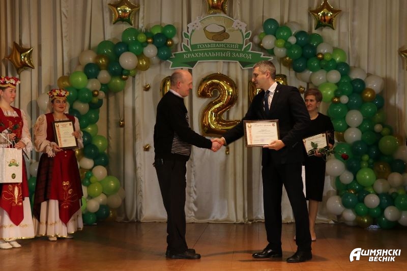 Почетной грамотой Гродненского облисполкома за многолетний труд и высокие достижения в труде награждены директор предприятия Сергей Чудиловский, главный бухгалтер, ветеран труда Раиса Поплавская, аппаратчик получения сухого крахмала Евгения Адашкевич. Их вручил Сергей Рудинский, заместитель начальника по растениеводству комитета по сельскому хозяйству и продовольствию Гродненского облисполкома.