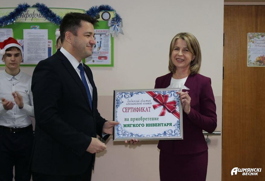 Заместитель губернатора вручил детям сладкие подарки и фрукты и передал руководителю центра Людмиле Козловской сертификат на приобретение мягкого инвентаря. Надежным подспорьем станет для коллектива учреждения и сертификат на приобретение мебели, который вручил председатель райисполкома Владислав Гершгорин.
