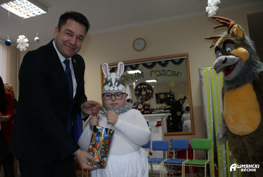 Во время акции воспитанников центра коррекционно-развивающего обучения и реабилитации в Ошмянах ждали новогодние сюрпризы. Ребята принимали поздравления и подарки от заместителя председателя Гродненского облисполкома Виктора Пранюка, председателя Ошмянского райисполкома Владислава Гершгорина.