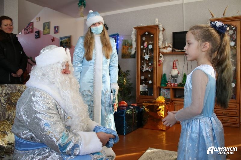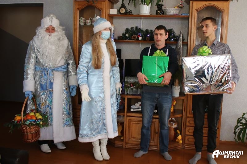 Воспитанники домов семейного типа Ошмянского района дважды повстречались с Дедом Морозом и его внучкой Снегурочкой. Новогодние сюрпризы и подарки семьи Лакота и Рябоконь принимали на районной благотворительной елке, а позже — от заместителя председателя райисполкома Натальи Станкевич и начальника управления образования Светланы Барковской.