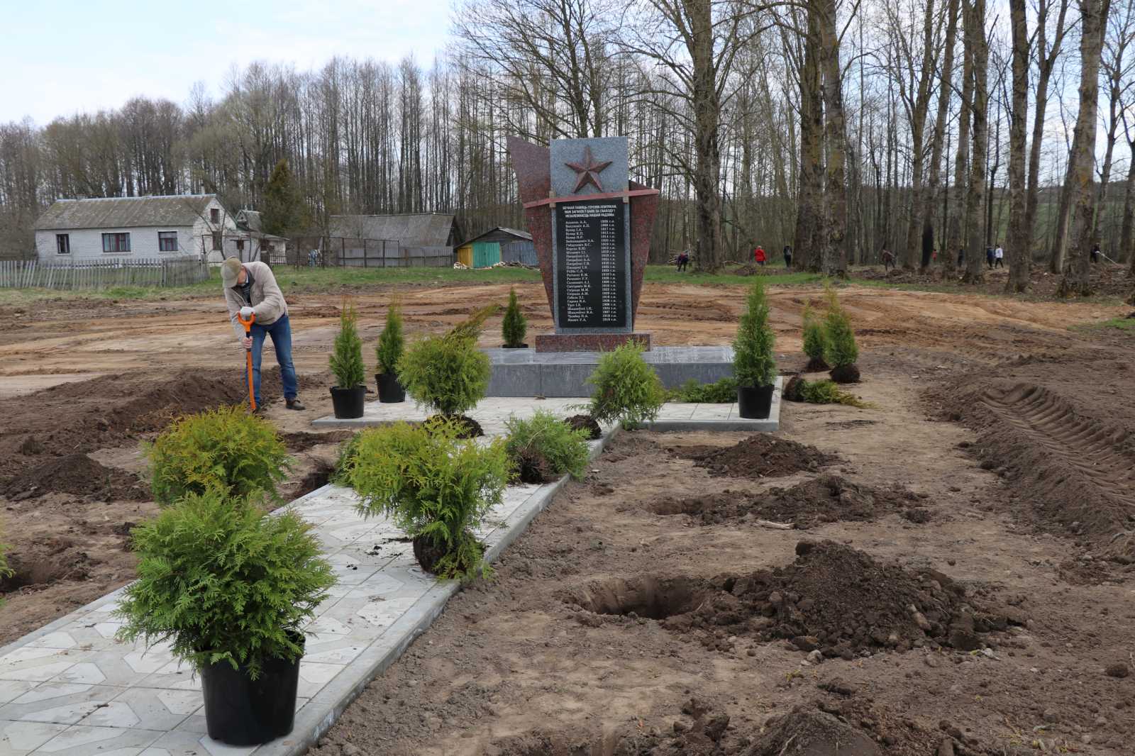 В преддверии праздника Первомая по инициативе председателя райисполкома Владислава Гершгорина активисты районного объединения профсоюзов вместе со своим лидером Юрием Карповичем провели маевку по благоустройству прилегающей к памятнику территории. Возле монумента в этот день были высажены туи и засеян газон. Зеленые насаждения появились благодаря инициативе местного фермера Виталия Мищука.