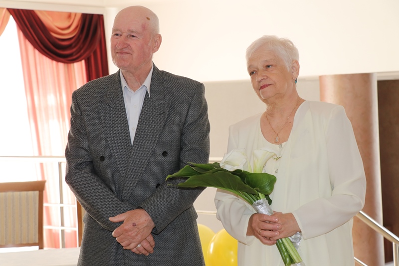 Инна Подъельская, начальник отдела ЗАГС Ошмянского райисполкома, проведя торжественную церемонию бракосочетания, поздравила золотых юбиляров с красивой датой и пожелала долгих лет жизни и радостных событий.
