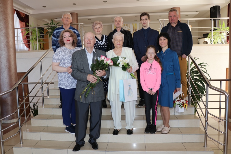 Слова поздравления, цветы, подарки и тёплые объятия принимали в этот день юбиляры от своих близких, родных, друзей, после чего отправились отмечать важную дату в узком семейном кругу. Семья Чумаченко занесена в Почетную книгу юбиляров Ошмянского района. Инна Подъельская в честь праздника вручила супругам диплом и памятный сувенир.