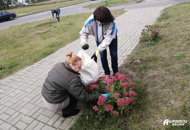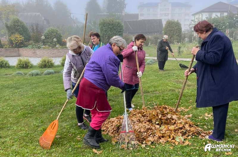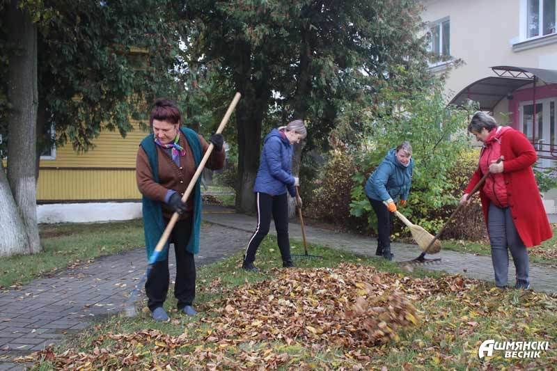 Арганізавана праходзіць гэта работа ў Ашмянскім раёне. Многія ўжо паставілі ўпэўненую кропку ў восеньскіх справах. А для тых, хто не завяршыў навядзенне парадку на сваіх тэрыторыях, надзейным стымулам стаў раённы суботнік. Першы суботні дзень кастрычніка паклікаў ашмянцаў на працу па добраўпарадкаванні сваіх двароў і падведамасных тэрыторый, а таксама замацаваных за арганізацыямі памятных аб’ектаў. Да працоўных калектываў далучыліся і мясцовыя жыхары: парадкуюць у дварах шматкватэрных дамоў і на прыватных уладаннях. Шмат работы ў гэтыя дні ў работнікаў жыллёва-камунальнай службы: трэба своечасова, пакуль не выпаў снег, падгрэбсці апалае лісце. Апошнія штрыхі на сваіх тэрыторыях робяць калектывы ўстаноў адукацыі і культуры. А хтосьці сустрэў суботнік на сваім рабочым месцы.