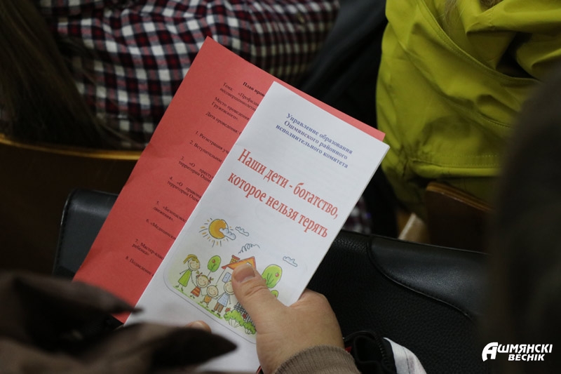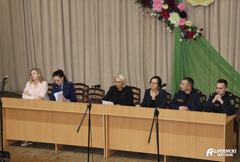 В работе собрания принимали участие заместитель председателя Ошмянского райисполкома Наталья Станкевич, заместитель председателя комиссии по делам несовершеннолетних Валентина Явтошук, начальник управления образования Ошмянского райисполкома Светлана Барковская, работники прокуратуры, РОВД, здравоохранения. В зале присутствовали педагоги, родители несовершеннолетних, в отношении которых проводится индивидуальная профилактическая работа, признанных находящимися в социально опасном положении, а также несовершеннолетних из многодетных и неполных семей.
