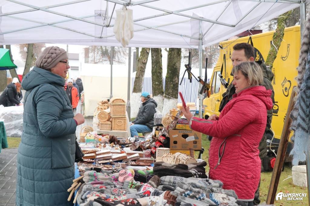 У гарадскім скверы разгарнулі продаж народныя ўмельцы. Біжутэрыя ручной работы, посуд, прадметы хатняга побыту, кашалькі, цацкі, пернікі – выбар быў вялікі. Вырабы народных майстроў прапаноўваў і аддзел рамёстваў і традыцыйнай культуры Ашмянскага РЦК.