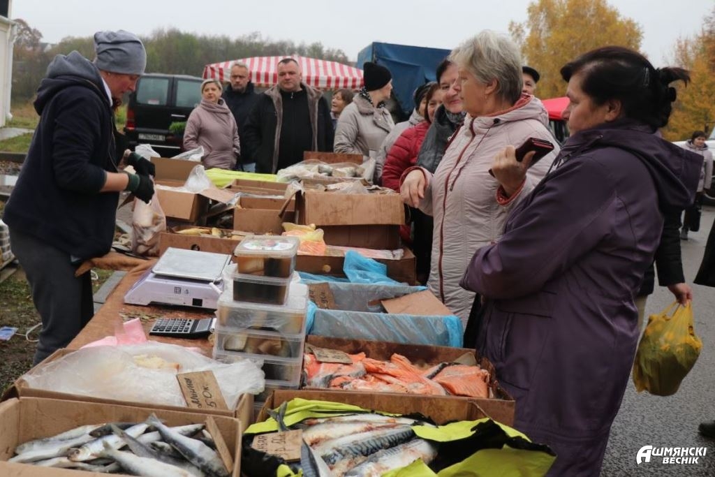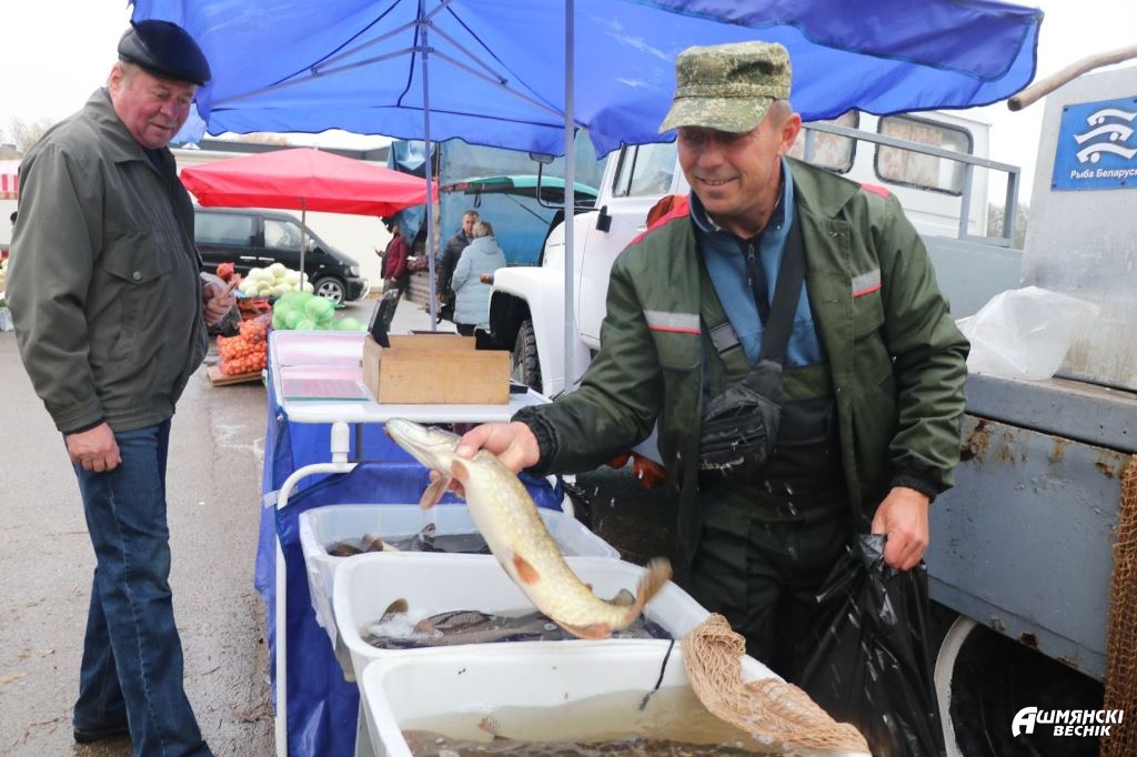 Ніхто не пакідаў кірмашу з пустымі рукамі. Падсілкавацца і купіць прадукты да абедзенага стала можна было ў палатцы філіяла спажывецкага таварыства. Пірагі з рознымі начынкамі, булачкі, мясныя рулеты і каўбасы разыходзіліся хутка. Каб купіць свежамарожаную і салёную рыбу, трэба было аддстаяць у чарзе хвілін трыццаць. Куплялі ашмянцы і жывую рыбу, прывезеную з Солаў. Разам з традыцыйным карпам прасіліся ў торбу шчупак, амур і таўсталобік.