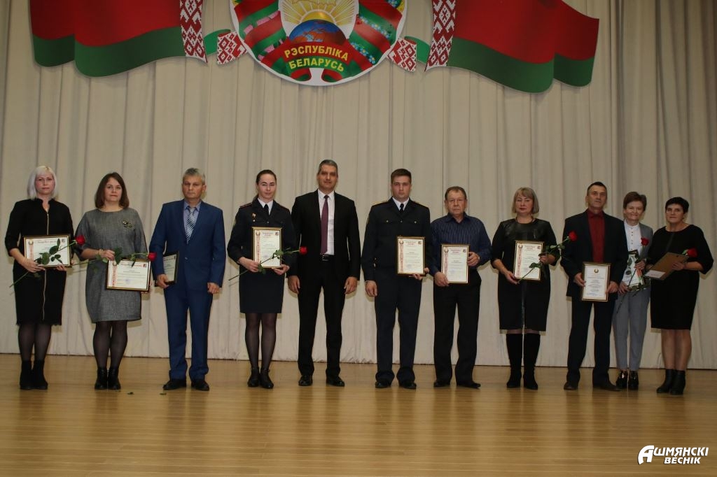 Благодарственным письмом председателя Ошмянского районного исполнительного комитета отмечены милиционер взвода милиции Мария Борковская, милиционер-водитель группы задержания взвода милиции Александр Браницкий, сторож третьего разряда подразделения сторожевой охраны Антон Петрович, контролер четвертого разряда на контрольно-пропускном пункте подразделения сторожевой охраны Гелена Островская.