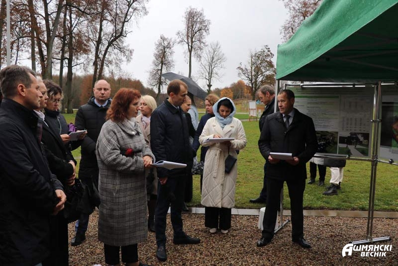 О реставрационных планах, использовании туристического потенциала культурного объекта шла речь во время выездного заседания коллегии Министерства культуры. Участников мероприятия приветствовали заместители председателя Ошмянского райисполкома Наталья Станкевич и Андрей Клышевский, начальник отдела идеологической работы, культуры и по делам молодежи Ольга Шидловская.