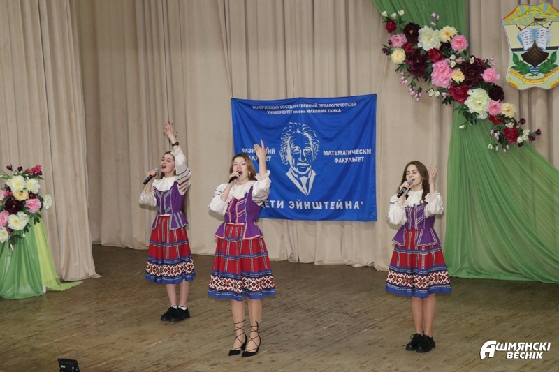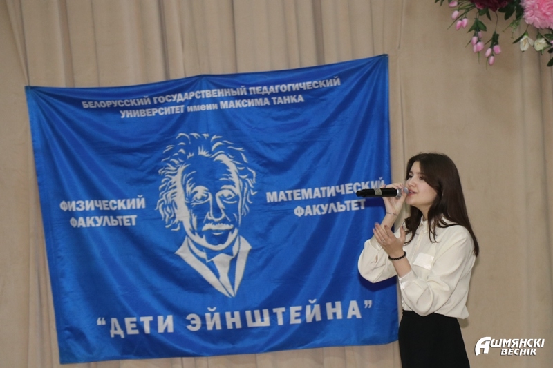 У наш раён прыехаў атрад фізіка-матэматычнага факультэта “Дзеці Эйнштэйна”. Дэбютнае выступленне студэнтаў адбылося на базе СШ № 1 г. Ашмяны. З прывітальным словам выступіла Ганна Клімовіч, дэкан фізіка-матэматычнага факультэта. Яна расказала прысутным пра ўніверсітэт, яго гісторыю, славутых выпускнікоў. Пасля зрабіла акцэнт на традыцыях навучальнай установы. Людміла Тухолка, намеснік дэкана па навуковай працы, заклікала паступаць у педагагічны ўніверсітэт. Школьнікі даведаліся пра новыя спецыяльнасці, выкладчыцкі састаў, магчымасці рэалізаваць свае таленты.