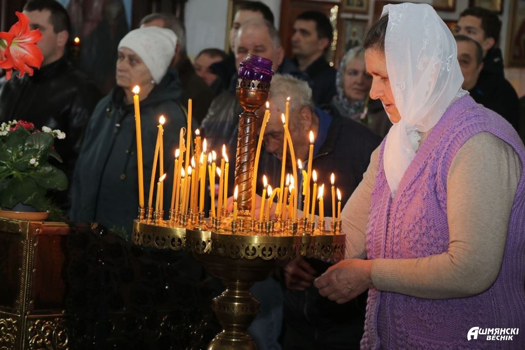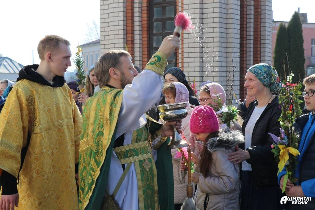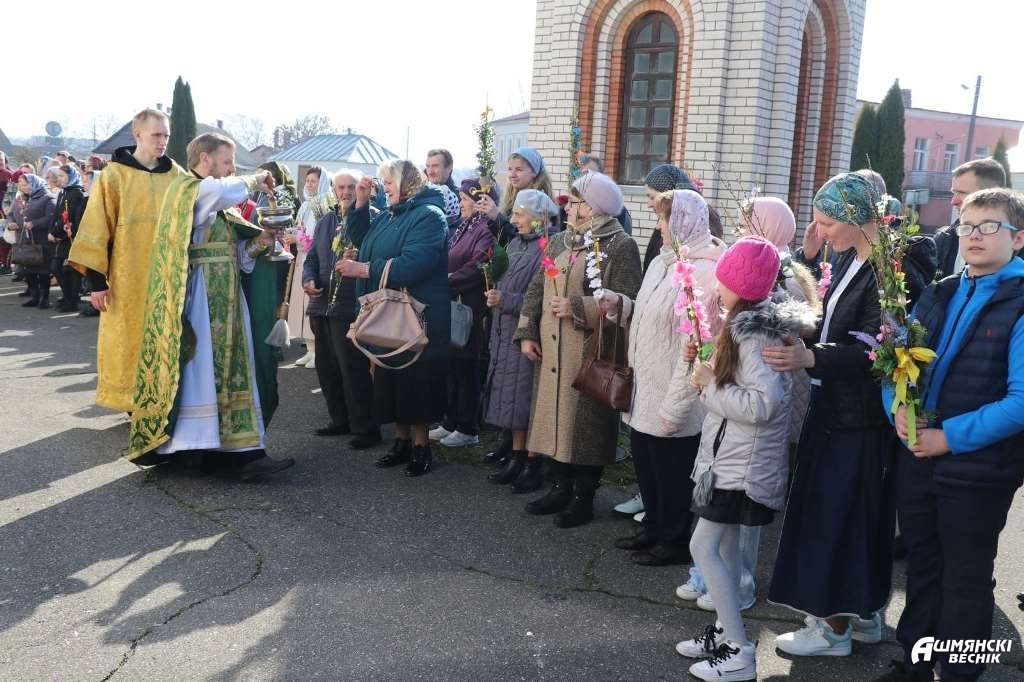 Урачыстая літургія і асвячэнне вярбы адбылося ў храме Уваскрэсення Хрыстова ў Ашмянах.