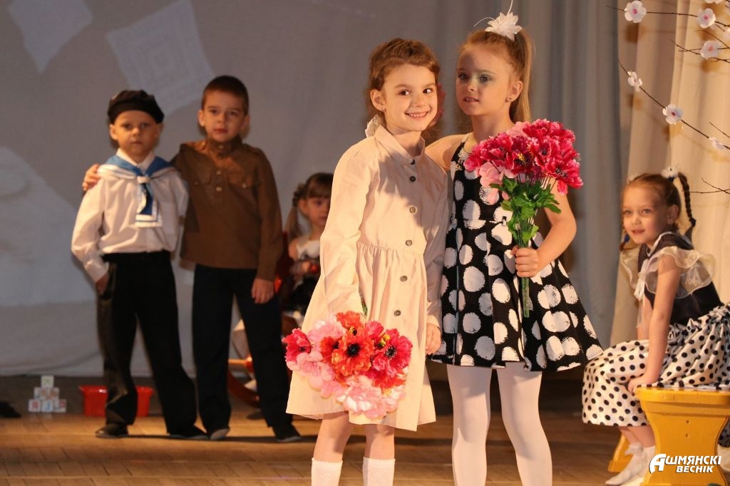 В очередной раз творческий отчет детских садов о проделанной работе за год растрогал зрителей до глубины души. Они смахивали слезы и не переставали восхищаться юными артистами. И вовсе не потому, что большинство из них были родителями мальчишек и девчонок, впервые вышедших на большую сцену! Именно тема, как никогда актуальная в сегодняшнем мире, поднятая малышами, напомнила взрослым, как хрупок мир и как важно его беречь, ни при каких обстоятельствах не забывать о страшных событиях кровавой войны, воспитывать подрастающее поколение на героическом прошлом своей страны.