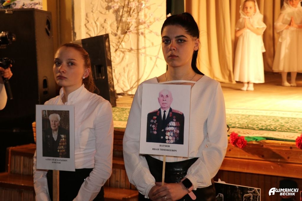 Творческая программа, рассчитанная на один час, пролетели как одно мгновение. Потерянное детство, боль и страх, слезы матерей, не дождавшихся с войны сыновей, гордость за своих прадедов, сложивших головы на поле брани, но не отдавших Родину врагу, радость мирного Мая и память поколений, выразившаяся в портретах воинов-освободителей – страница за страницей сменялись героические сюжеты событий нашей истории, которые несмотря на почти восемь десятилетий по-прежнему живы!
