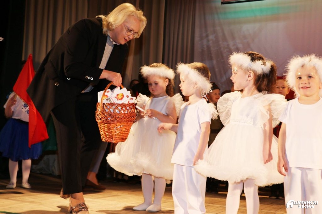 Зрители приняли творческий отчет дошколят бурными аплодисментами. Подарок юным артистам преподнесли и взрослые – сладости от управления образования Ошмянского райисполкома, которые вручили детям заместитель председателя райисполкома Наталья Станкевич и начальник управления образования Светлана Барковская, стали наилучшей оценкой детского таланта.