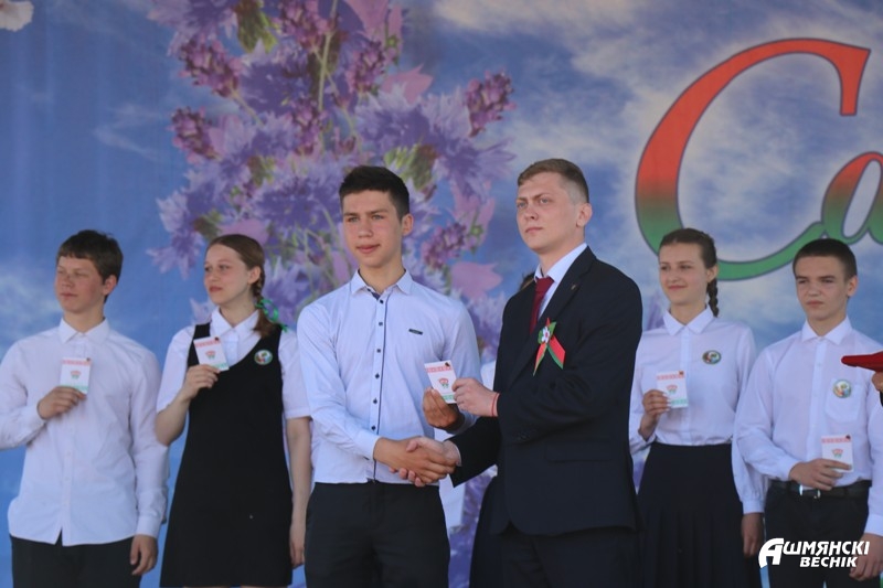 По традиции преемственности молодежных организаций страны в этот праздничный день ребята попрощались с пионерским галстуком и влились в дружную семью самой крупной молодежной организации — ОО «БРСМ». Членские билеты вчерашним пионерам вручил первый секретарь районной организации ОО «Белорусский республиканский союз молодежи» Никита Стубеда.