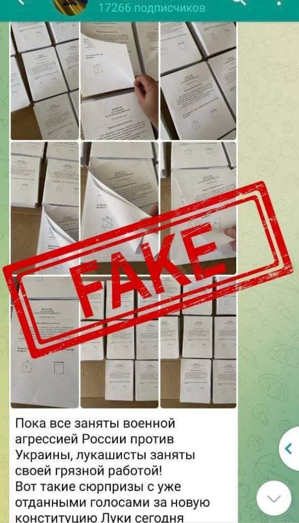 В Центризбиркоме подчеркнули: «Учитывая, что новость размещена на деструктивных Telegram-каналах, администраторы которых находятся в Польше и Литве, можно сделать вывод, что подготовивший эти копии и распространивший новость человек не владеет реальной обстановкой о ходе проведения референдума и принятых мерах безопасности».