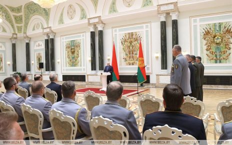 Жизнь без войны — это результат ежедневной работы, которая не всегда видна, но требует колоссальных усилий. Об этом Президент Беларуси Александр Лукашенко заявил на церемонии вручения погон высшему офицерскому составу, передает корреспондент БЕЛТА. «Мы с вами практически традиционно встречаемся в преддверии праздничных мероприятий, посвященных Дню Независимости. Сегодня вручаем генеральские погоны. К ним прилагается высочайшая ответственность за […]