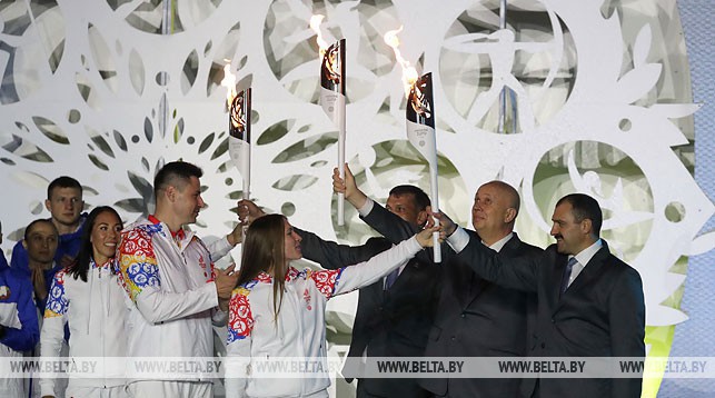Огонь II Европейских игр доставили на площадь Государственного флага в Минске